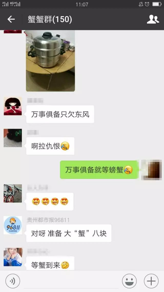 “千里寻蟹”活动开始后,贵州都市报96811“蟹蟹群”里的小伙伴就已经敲锅打碗,掰着手指头数什么时候才能吃到大闸蟹了……