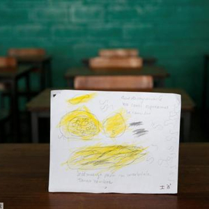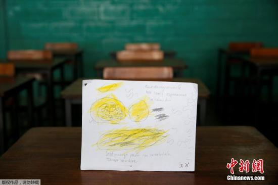 委内瑞拉儿童用图画表达饥饿,这张图上写着:“早饭我什么也没吃,午饭吃了意大利面和摩泰台拉香肚,现在我饿了。”