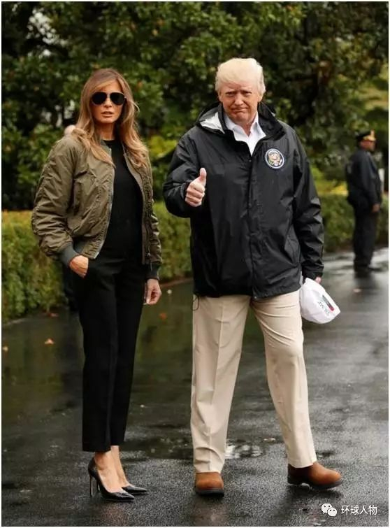 与之前穿着5英寸高跟鞋视察飓风灾区的特朗普夫人相比,有诚意得多了↓↓