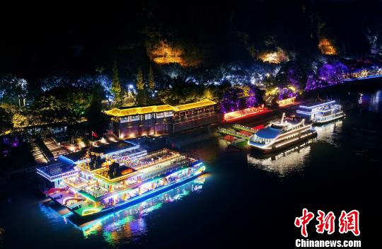 夜幕中游船起航。 刘忠俊 摄