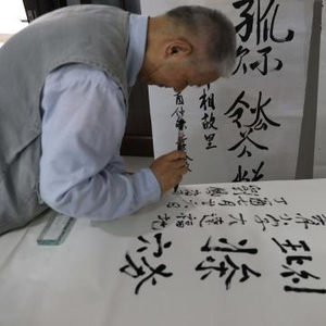 刘凤翥教授用契丹文字书写“大辽福地”。 沈殿成 摄