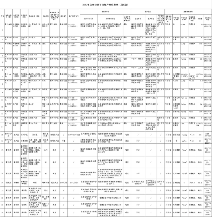 福州24批次食品抽检不合格,荣誉、富黎华、海中洲上榜