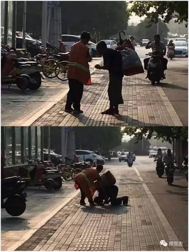 看到街上有个无家可归的老人,