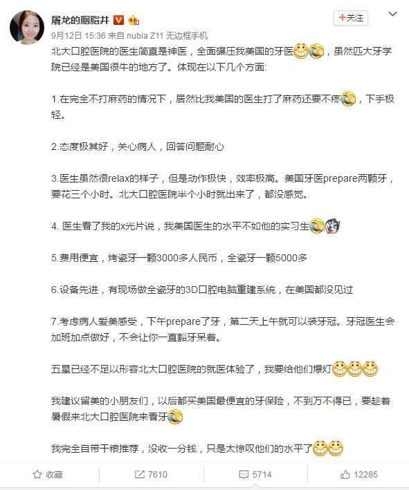 留美博士回国看牙惊叹 网友:想找个牙医当对象