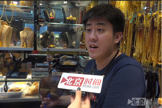 (从事蜜蜡生意的王先生接受北京时间记者采访)