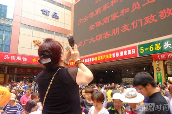 尽管只剩一天,但是天意市场内外依旧热闹非凡,一些商户甚至把摊位搬到了市场外的小广场上进行甩卖。几乎每个摊位前都是里三层、外三层站满了顾客,5元一条的丝巾、10元一件的衬衣,原价1000余元的床上用品只卖不到300块,随处可见“狂甩”“狂卖”“最后一天”“一件不留”的横条幅。