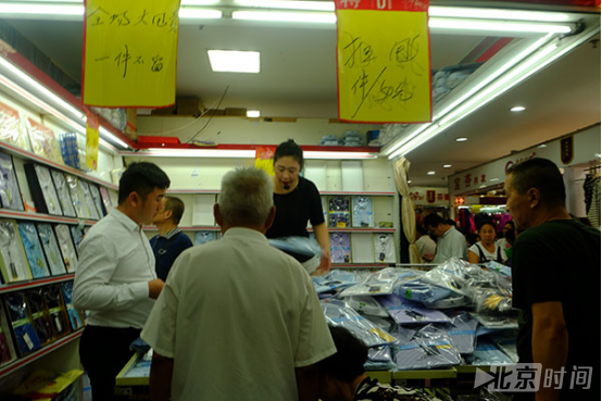 (市场内随处可见“狂甩狂卖”“最后一天一件不留”的横条幅)