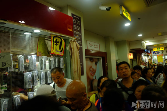进到市场里面,摊位之间本就不宽敞的过道被买客们围得水泄不通。摊主们几乎把店里所有的商品都堆到了紧邻过道的柜台上。“我这里都是回头客,老客人了,多看一眼是一眼,到时候不在这儿了,他们也有办法找到我。”在天意经营一个蜜蜡店铺的王先生告诉记者,对于天意的闭市他并不担心,不管是再觅商铺还是开网店,他的生意都会继续下去,而且会越来越好。