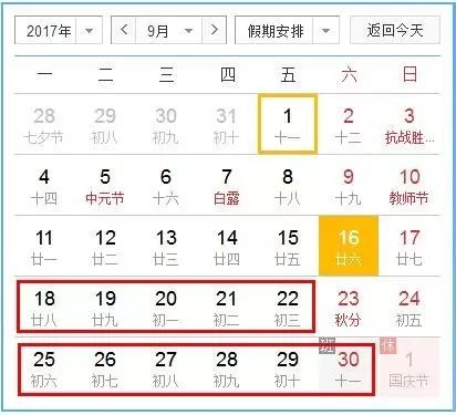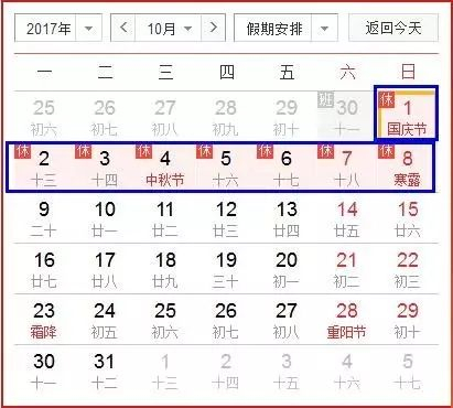 2017年国庆中秋双节期间