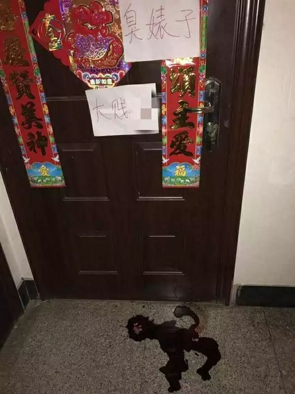 瘆的慌!半夜回家发现门口被泼血 门上贴着辱骂字条