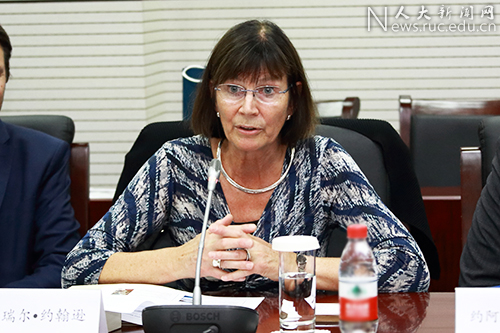 托瑞尔·约翰逊女士对中国人民大学的招待表示感谢,并详细介绍了挪威高等教育的情况。她说,中国人民大学与挪威主要高校开展了诸多合作。此次来访,对挪威教育科研部制定中挪高等教育国际交流政策具有借鉴意义。挪威教育科研部将积极鼓励并支持优秀的挪威学生前往中国人民大学等中国高校学习,并推动中挪高校深入开展高等教育交流合作。