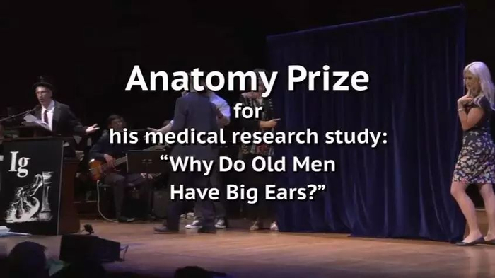 搞笑诺贝尔解剖奖的得主詹姆斯·西斯科特一直暗暗观察为什么老年人有大耳朵?为此,他测量了200多个人的耳朵长度并欣喜地得出结论:随着岁月的增长,人们的耳朵真的会越来越大。