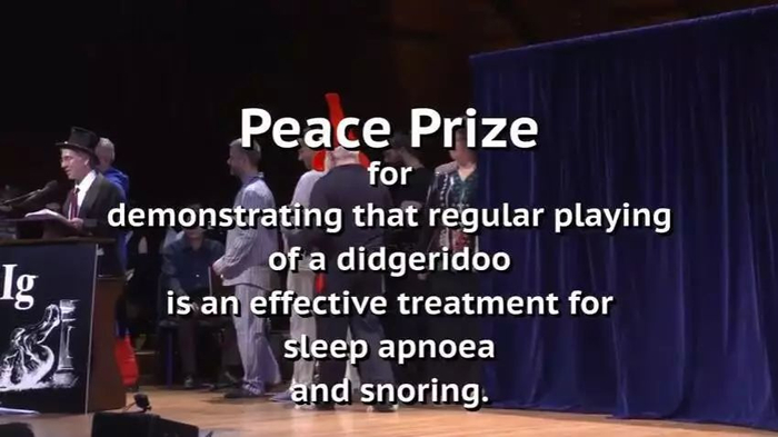 今年的“搞笑诺贝尔和平奖”被授予了一个瑞士团队。他们发现练习吹迪吉里杜管4个月能帮助改善较轻度的睡眠呼吸暂停综合征,以及相关的打鼾症状。