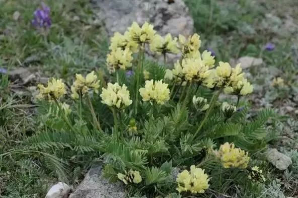 花期:6—7月。黄花棘豆又称“马绊肠”,它含有生物碱,是草场的毒草之一。