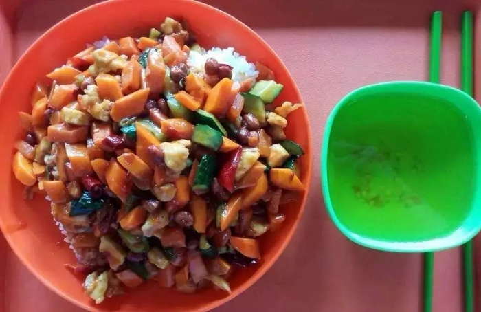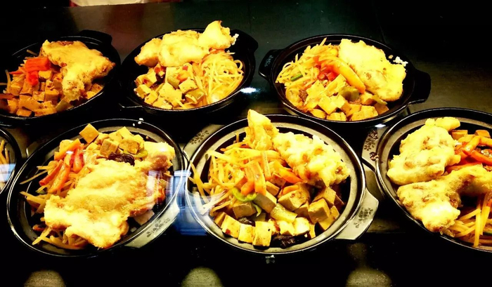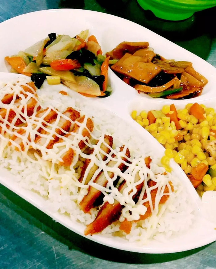 一食堂的黄焖鸡米饭、肥肠米线、盖浇饭