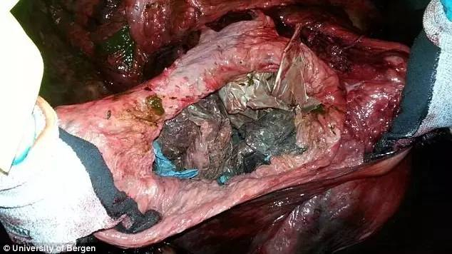 2月初,在挪威西部海岸,人们发现了一条巨大的鲸鱼,搁浅在海岸的沙滩上 。为了研究搁浅原因,科学家解剖了这条鲸鱼,结果发现:这条鲸鱼的胃里没有丝毫食物,但却被30个塑料袋所塞满,其中最长的塑料袋,长度甚至达到了2米半!