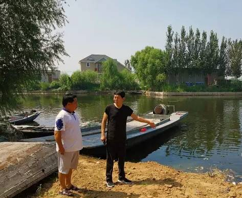 安新县乡村干部查看东田庄村内码头垃圾清理情况。
