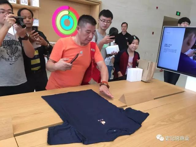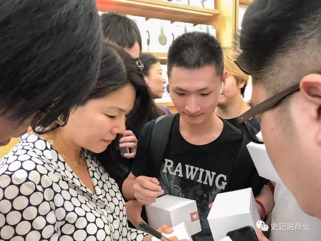 来自苏州的70后刘先生,身上穿着南京金茂汇Apple Store纪念T恤,带着一对00后的孩子一起来追Apple Store开业,他11岁的女儿就是现场年龄最小的“果粉”。这位刘先生以前做生意,前天到宁波,带着两位00后的孩子一起通宵排队,儿子17,女儿11,他是一位技术控和细节控,所以会和朋友讨论新产品的技术改进,然后再确定是否购买,但每次华东地区有新店开业,他都会带着孩子支持,不在乎这些费用支出,享受其中的乐趣。”刘先生觉得9.22上市后应该会给孩子买,自己用孩子剩下的iphone7,自iphone5s以来,全家用了每一代苹果产品以及部分周边,他称呼自己为“果粉的父亲”,但事实上他就是最典型的果粉之一,有资本,有热情,也有专业能力。