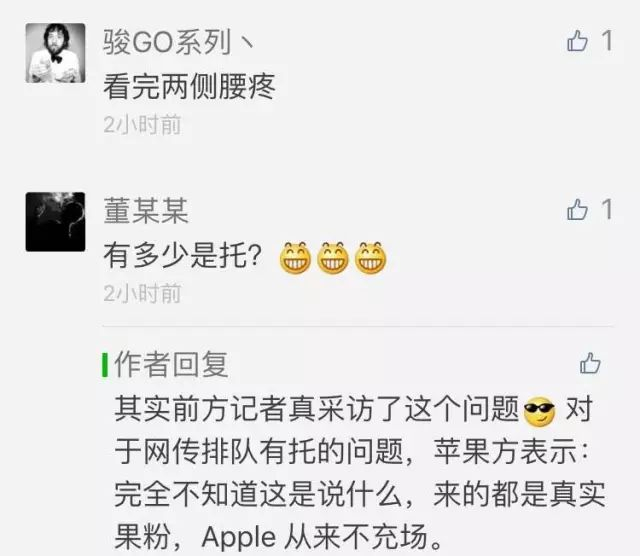 记者发现, 像刘先生一样,好多粉丝还是从长沙、南京、上海、广州赶来的,现场基本上以男生为主,年纪大部分在30左右甚至30以内,其中年轻人多,女生很多是陪着男朋友或丈夫来的,独立出行的较少。有个别年长的在队伍里,入场时和工作人员笑着击掌,被苹果塑造起的年轻化氛围感染。