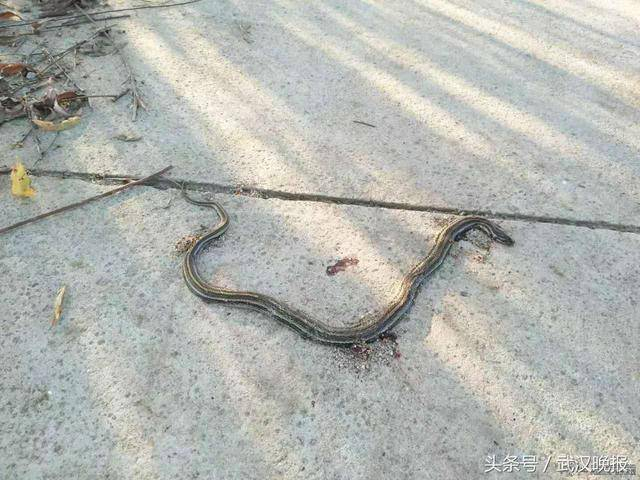 15日早晨6点多,汉南一女士早晨到当地牛海湖绿道上跑步时,她突然感到自己踩到了一根软滑有弹性的“绳子”,定睛一看,吓坏了,原来自己踩在一条褐灰色的蛇身上。这条蛇长约40厘米,其体表有哑铃状斑纹,值得庆幸的是,这是条死蛇。
