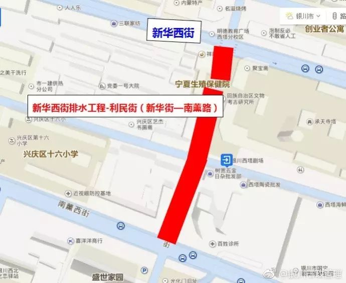 2.因新华西街排水管道工程准备开工建设。定于2017年9月18日至11月30日期间,对利民街(新华街—南薰路)段进行交通半封闭;