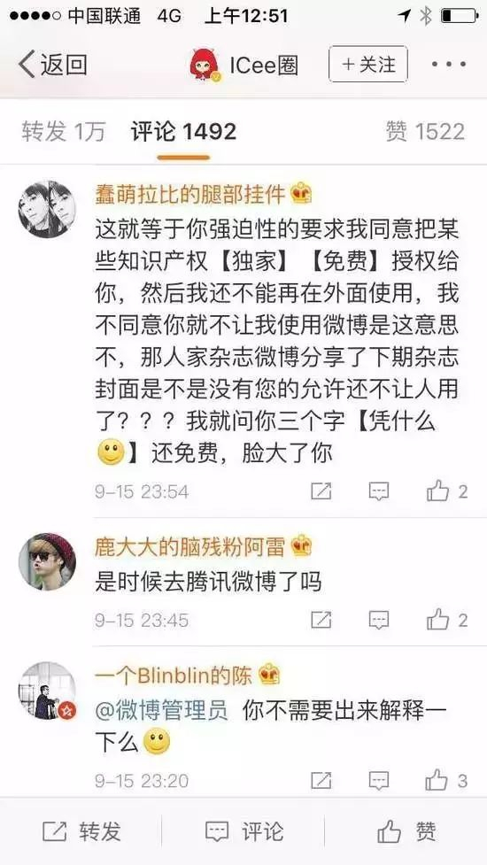 “路西法瑞丝:你微博给用户著作费了?凭什么用户的作品发在你微博上就成你微博的所有权了?