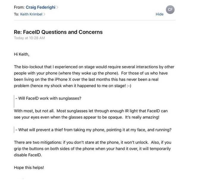 日前,苹果软件工程主管Craig Federighi在给用户回复邮件事,解答了上述问题。