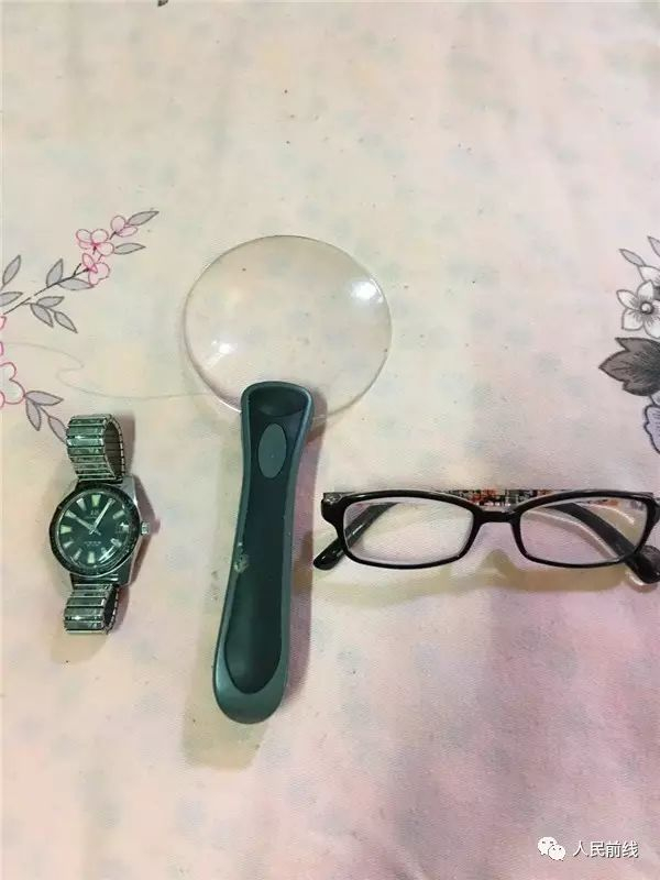 这是他用了很多年的眼镜、放大镜和手表。