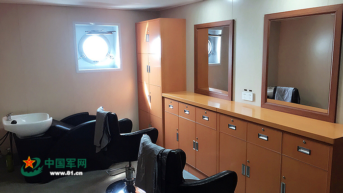 长期远海航行,为了保持良好的军容仪表,理发室也是必不可少的。乔梦 摄