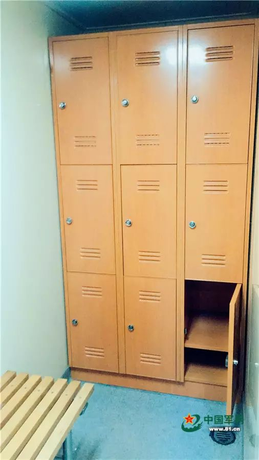 配有储物柜的学员盥洗室。中国军网记者乔梦 摄