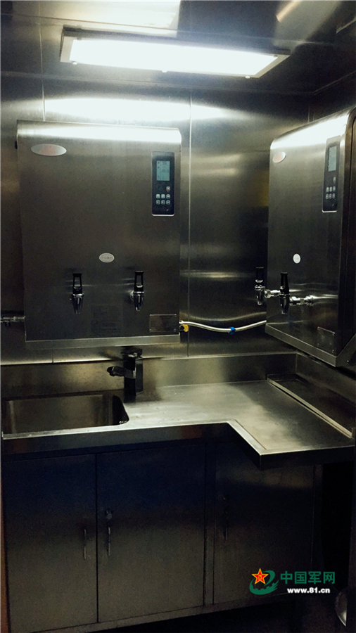 茶水间为舰员和学员的饮用水提供热水保障。乔梦 摄