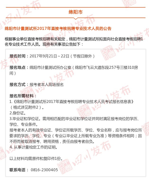 小伙伴们注意啦!本周四川又发布了一波人事考试消息。根据各大人事考试网站的最新消息,川叔为大家整理了一波重磅岗位,包括绵阳、南充、遂宁等市州各大部门单位,小伙伴们快看过来吧,记得分享给身边需要的小伙伴哦!
