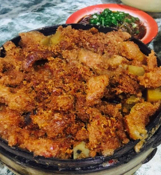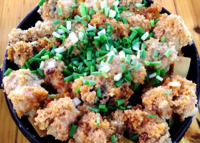 除了“水上漂”外,店家还有一手好的“蒸功夫”。粉蒸排骨、粉蒸肉、烧白、蒸鱼头等,每道菜都把精华蒸出来了!