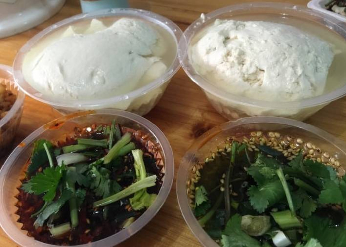 普通豆花则稍微老一点点,适合蘸酱佐饭也很香的!
