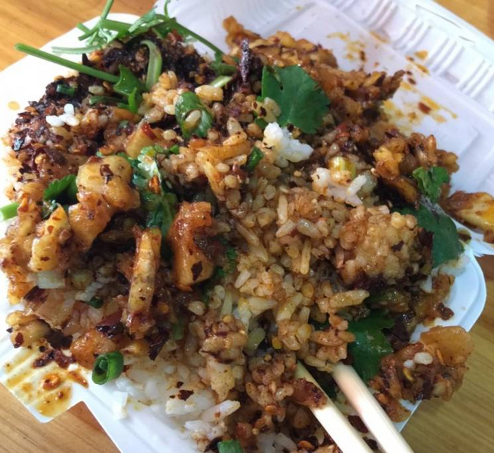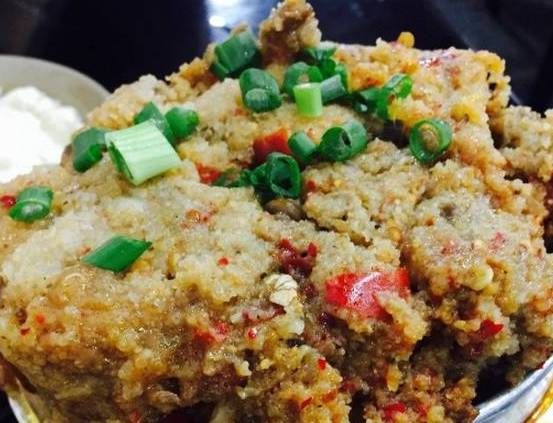 还有佐料饭,就是很多佐料豁在饭里,很香,自己弄不出那个味道来!