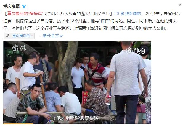 曾几何时随处可见的棒棒大军,现在已经大大减少。这群靠一根竹棒和肩膀生存的人,是重庆一个时代的见证!