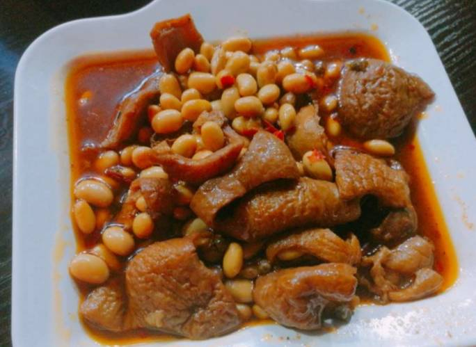 红烧肥肠洗得超级干净,一点肥油都没有,和豌豆一起烧制而成,肥肠和豌豆都烧得软硬适中,肥肠入口软糯,香味十足~