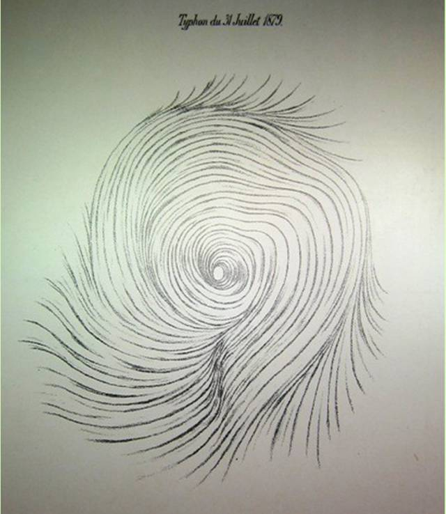 徐家汇观象台首任台长能恩斯(Marc Dchervens)手绘1879年7月31日影响上海强台风的台风眼