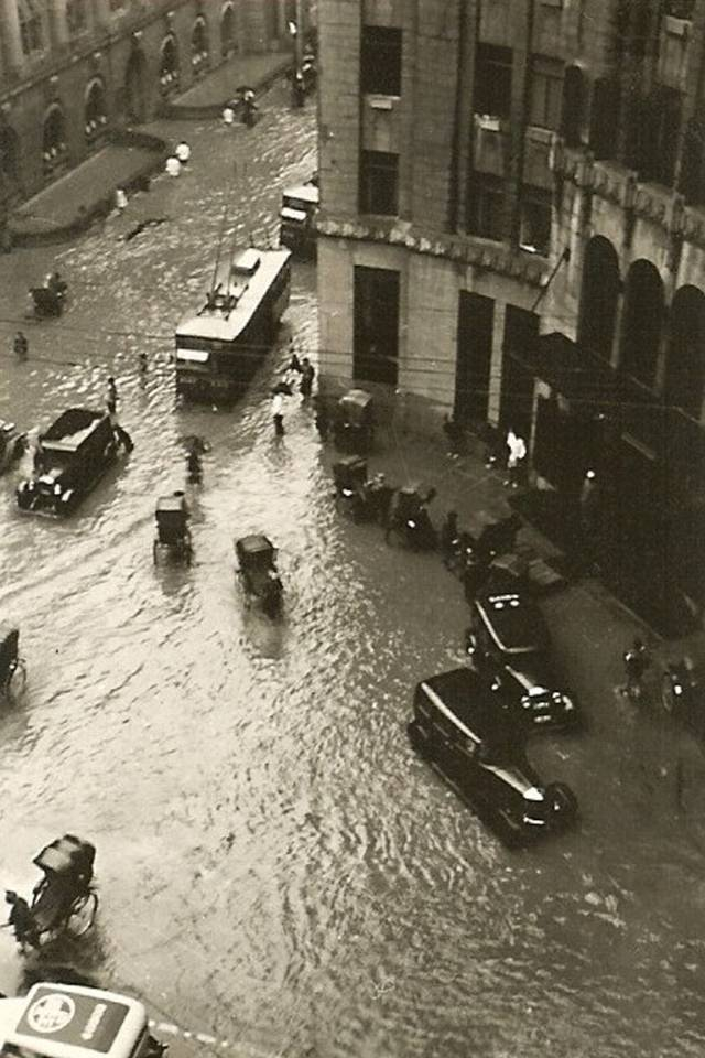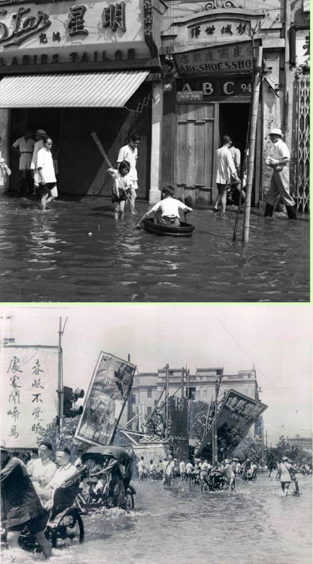 20世纪30年代,一场台风带来大量降雨,上海街区被淹