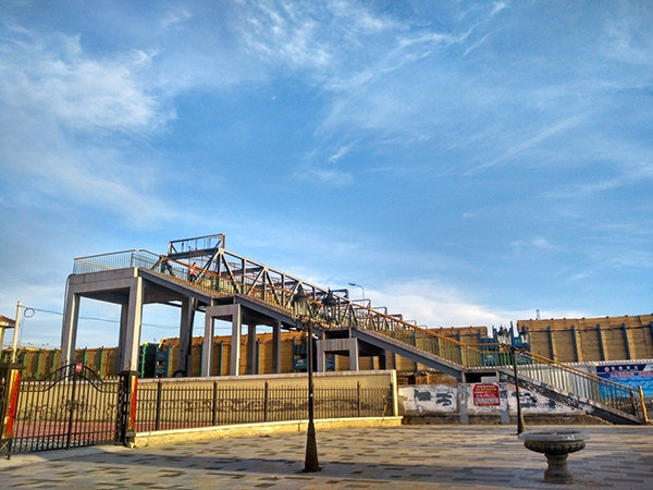 铁路线横穿了满洲里市区,因为体量很小无需专门开辟道路,行人往往直接走天桥穿过铁路线,汽车需要在城区东边桥上盘旋一圈越过铁路。