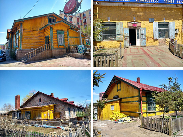 火车站向东铁路沿线的俄式老房子,普遍面临比较麻烦的维护问题。这些老房子大多是民居平房,一部分被当作装修建材的店面或仓库,虽挂着文保的铭牌,但维护状况堪忧;另一部分被开发为旅馆或餐馆,这类房屋基本只剩外面的空壳子,大概是想要商业化运作。但一方面,这些房屋大多为木质,肆意改造本身就是破坏,而木质房屋改为餐馆,须经受烟熏火燎,可能受损。