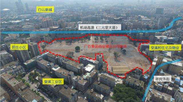 如上图所示,该地块南临三元里大道,东临白云新城,西临棠溪村,面积10.47万平方米,目前土地已平整。目前周边大部分为棠溪村集体土地,有棠溪工业区和一些村民住宅。