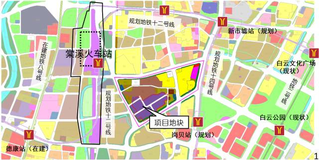 地块内仓储用地调整为二类居住用地、商住综合用地、中小学用地。总建筑面积30.46万㎡,该地块主要有两大功能:1、承接白云新城转移的建设量;2、对棠溪村部分住宅和集体物业的拆迁安置。