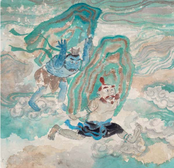 参与创作的年纪最长的画家奚阿兴在创作《女娲补天》时,感动于女娲在天塌地陷之时,从源头为苍生谋福,为了儿女,不惜牺牲自己的精神,为此,他不能接受画像石中“人首蛇身”的女娲模样,而将她画成一位伟大母亲的形象。