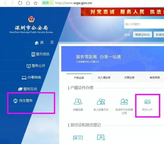 有需要申请的市民,即日起可登录深圳市公安局门户网站(http://www.szga.gov.cn)“民生警务”模块,选择“积分入户”业务参阅相关办事指南并进行申报,或通过关注“深圳公安”微信公众号,选择“积分入户”业务进行申报。
