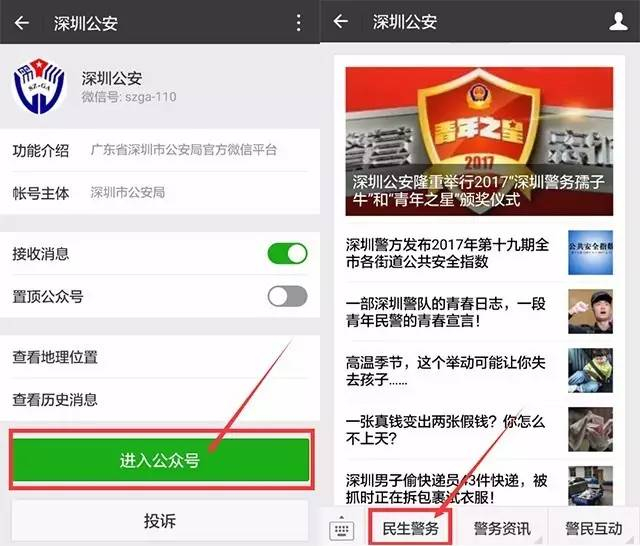 关注“深圳公安”微信公众号,点击“民生警务”栏目