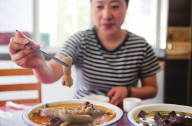 9月10日,暮云街道107国道旁的一家黑山羊专店,市民品尝羊肉。
