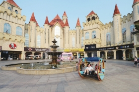 体验了滑雪,还可以犒劳一下眼睛,置身于一楼的冰雕世界,开启一段奇异的冰雪之旅。2000多平方米的冰雕展厅内,“中华五千年”“卡通形象”“冰上游戏”和“冰酒吧”四大主题将历史典故、文化理念融于其中,儿童趣味滑梯、冰上电动车、迷宫、冰壶和冰爬犁等多种冰上游戏让孩子们也能玩个过瘾。