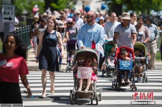 资料图:美国父母推着婴儿车,呼吁国会关注婴儿成长环境。