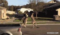 飞踹、直拳、锁喉、冲撞……袋鼠攻击可谓又快又狠,统计显示,试图和袋鼠握手言和的人类,10个里有5个短时间内会倒地不起、轻度瘫痪,4个被踢成终身残疾,最后那个没事的,多半是个女的。